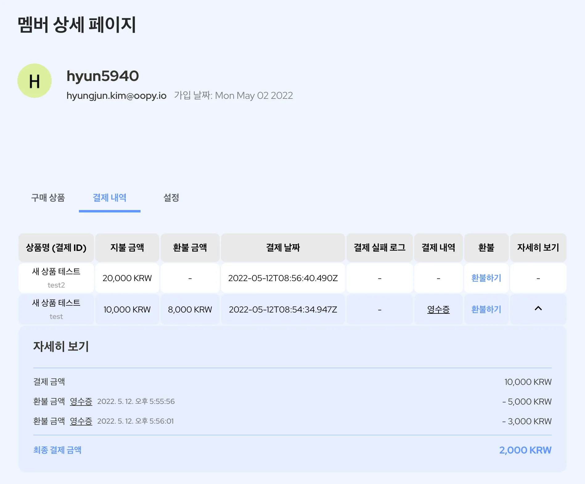 아래 멤버 결제 테이블에서 결제 내역을 자세히 확인할 수 있습니다.