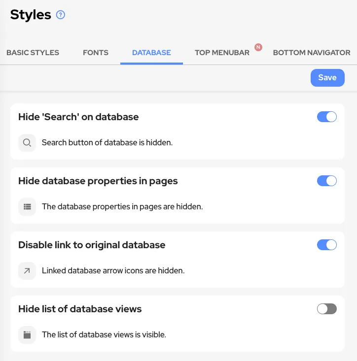 This feature by Oopy hides the search button and the database view list, so you can focus on your content.
