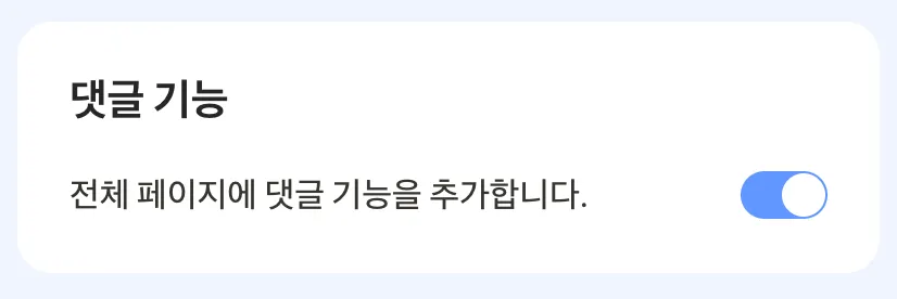특정 페이지에서 댓글 기능 ON/OFF를 설정할 수 있어요