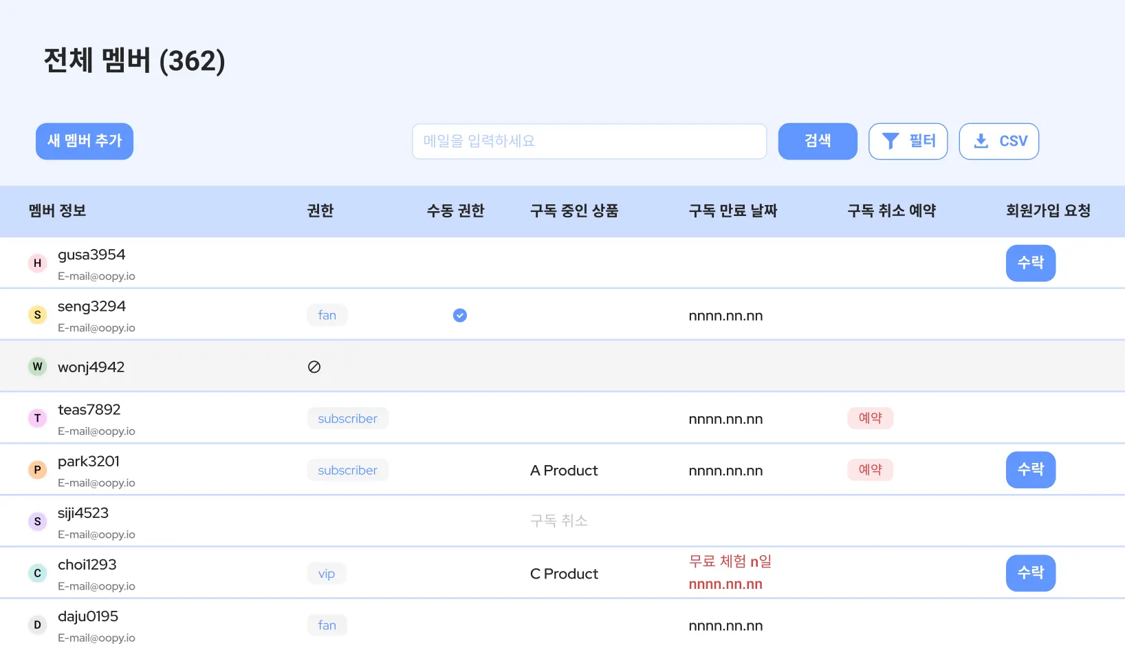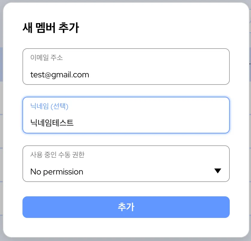 새 멤버를 추가할 때 닉네임을 미리 입력해둘 수 있어요. 우피 외부에서 관리하고 있는 멤버 리스트에 닉네임 역할을 하는 다른 정보가 있다면 닉네임 값을 미리 입력해 보세요