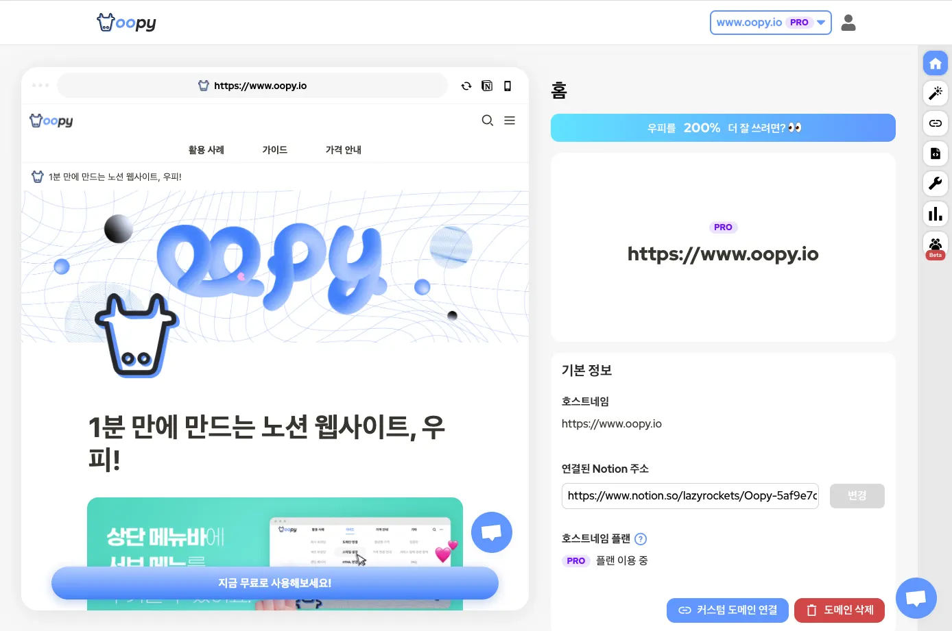버튼과 노션 버튼을 우측 상단으로 옮겨 공간을 활용했어요!