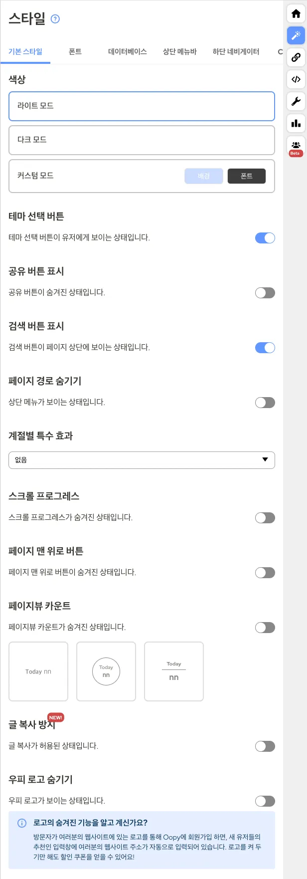 내 홈페이지에 실제로 어떻게 적용되는지 미리볼 수 있는 효과가 있을 거예요!