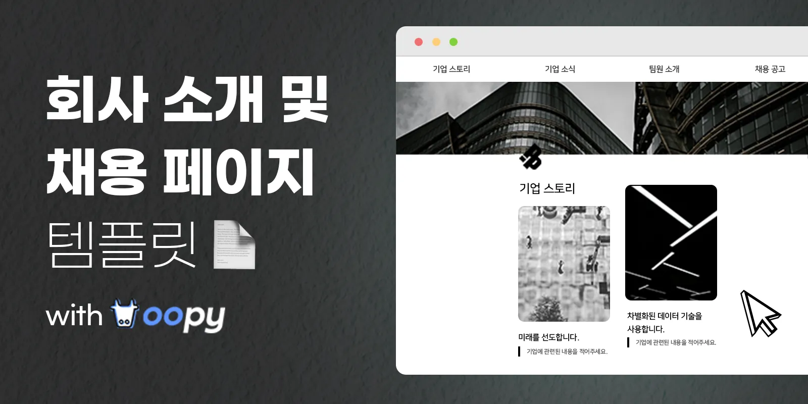 그래서 이번에 우피팀은 이번에 사용자 분들이 회사 소개 및 채용 페이지 제작을