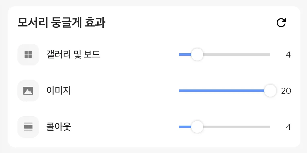 기업의 컨셉에 맞게 모서리값을 설정해 적용해보세요