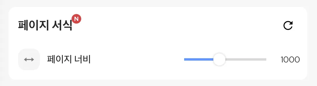 이번에 새롭게 추가된 페이지 너비 기능을 통해 기존 페이지 너비보다 조금 더 넓게 설정했어요.
