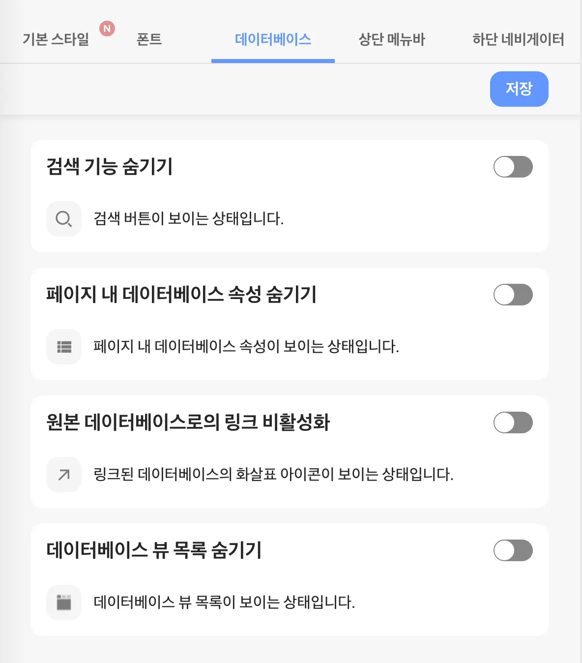 검색 기능과 데이터베이스 뷰 목록이 보이지 않아요!