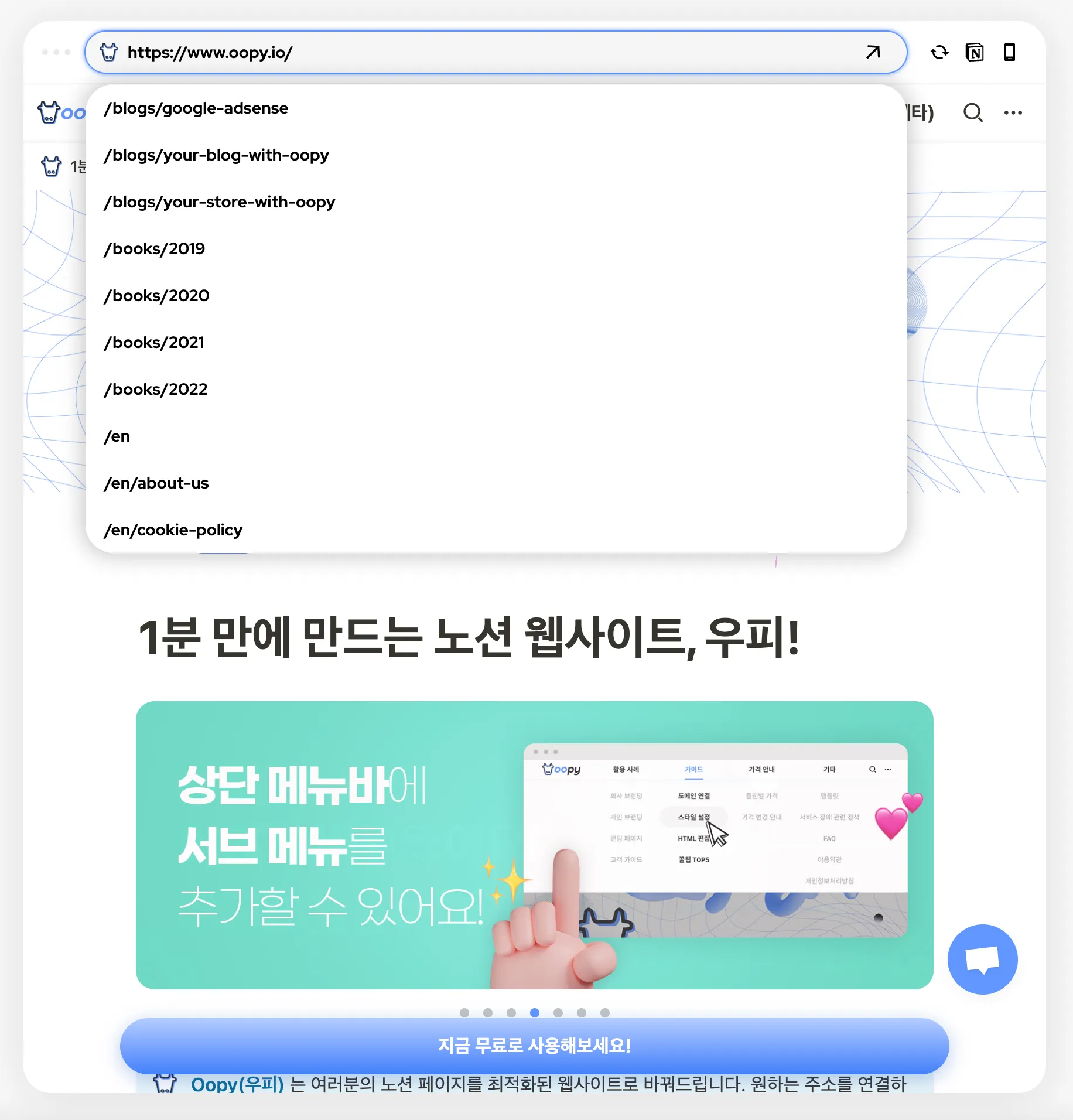이제 상단의 검색바를 통해 주소를 입력하고 손쉽게 페이지 이동을 해보세요!