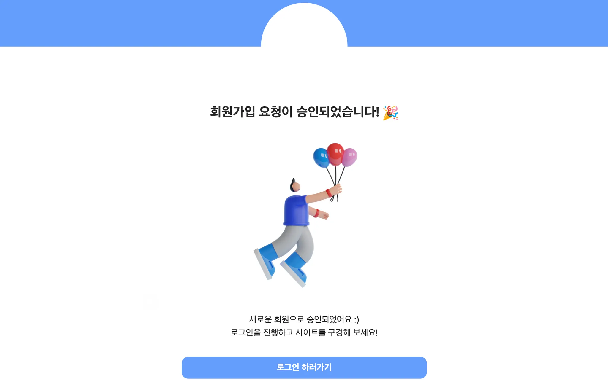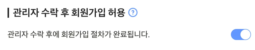 위와 같이 설정한 후, 방문자가 회원가입을 시도하면 아래와 같은 화면과 함께 대기 상태가 됩니다.