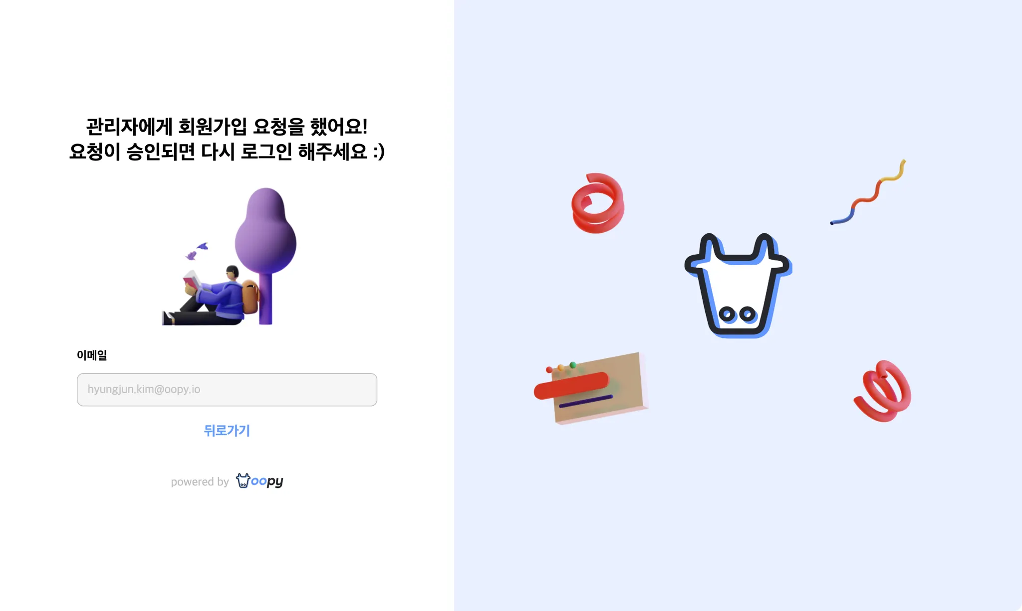 관리자가 방문자의 회원가입 여부를 수락할 수 있습니다. 수락이 되기 전까지 해당 방문자는 로그인을 할 수 없습니다.