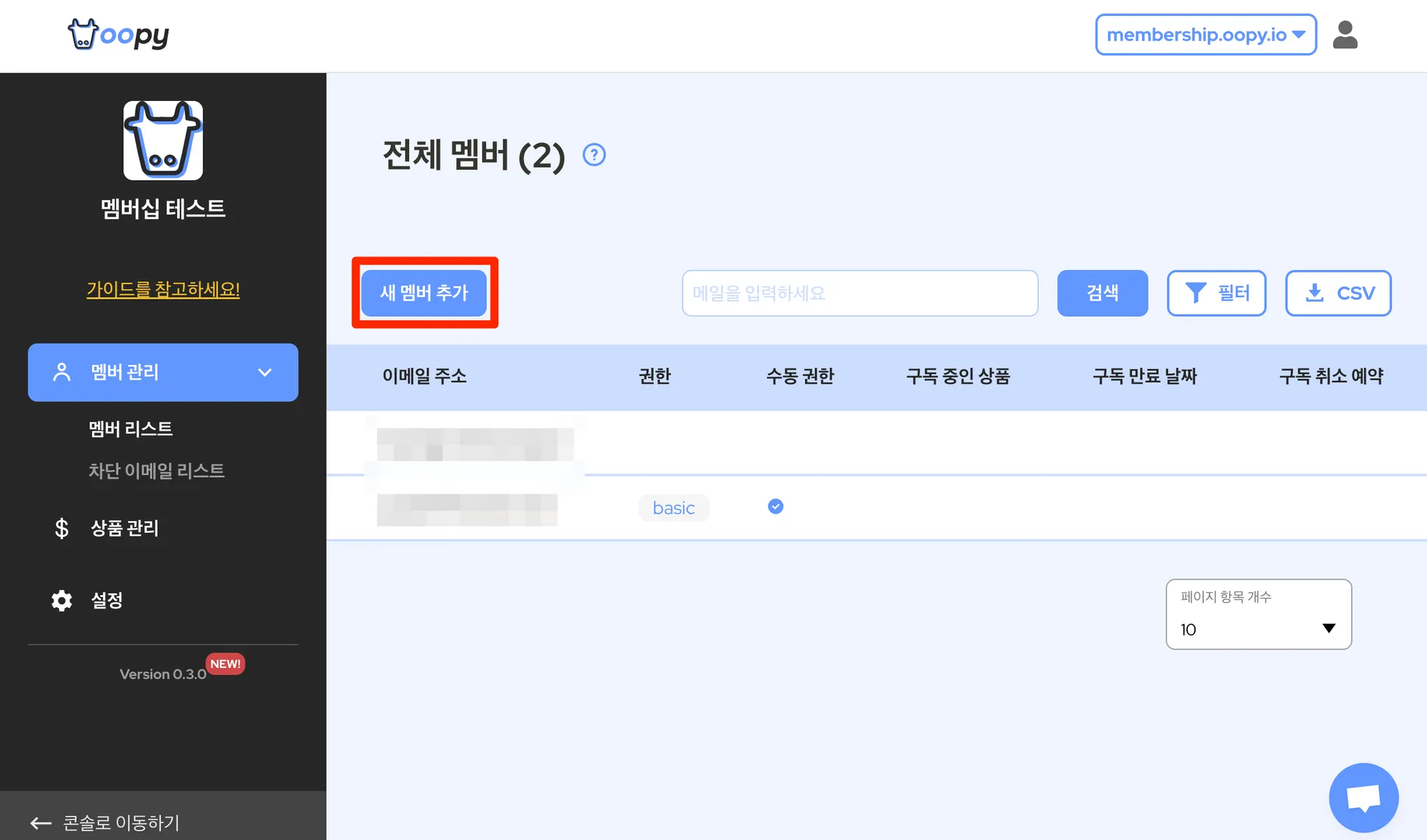 1. 수동으로 신규 멤버를 추가할 수 있습니다.