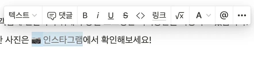 링크가 추가되기 원하는 텍스트 구간을 드래그해서 선택하면 원하는 링크를 추가할 수 있어요.