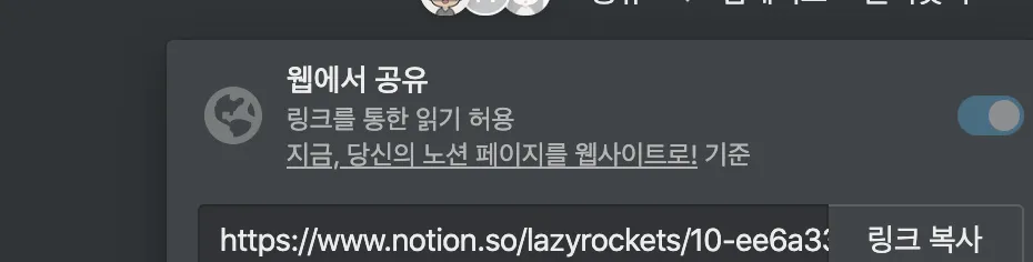 이제 작성한 노션 페이지를 다른 사람들에게 공개할 시간이에요!