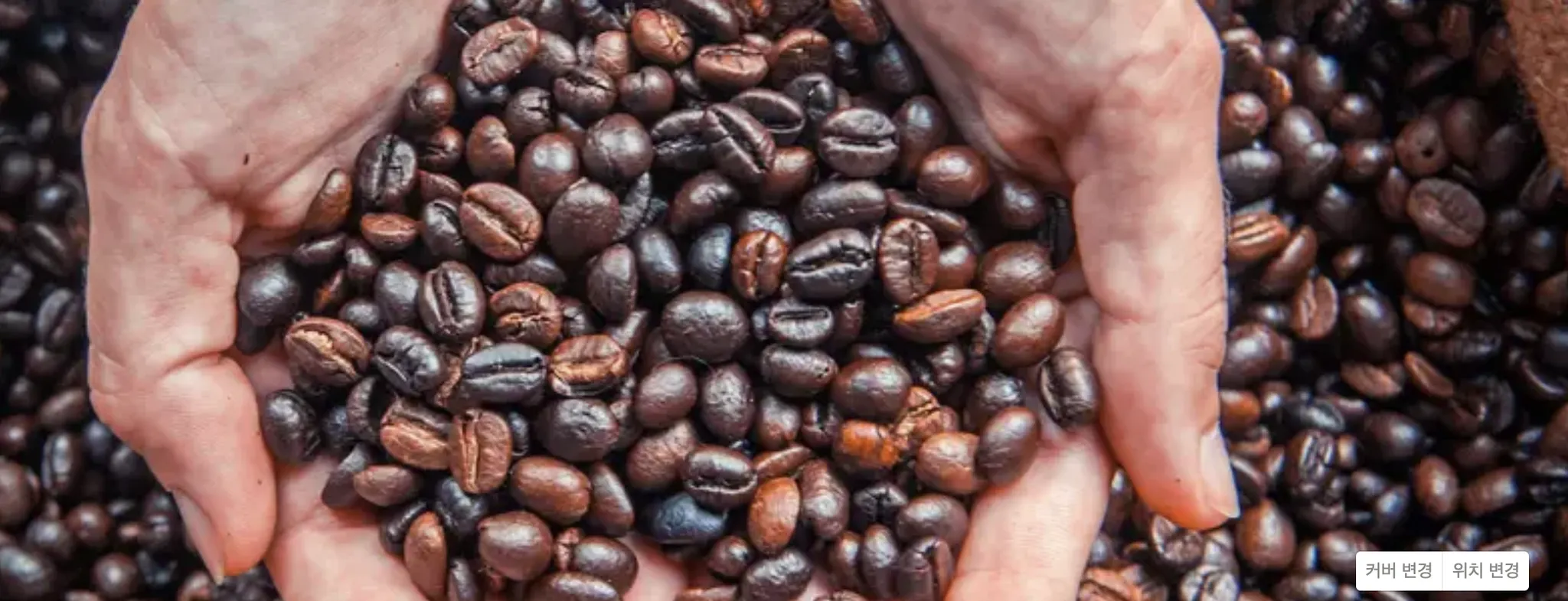 먼저 가장 위에 있는 커피콩 이미지를 우리가게 사진으로 변경해보세요. 이미지 위에 마우스를 올리면 우측 하단에 커버 변경 버튼이 보일거에요! 이 버튼을 누르고 내가 원하는 이미지를 선택하면 성공!