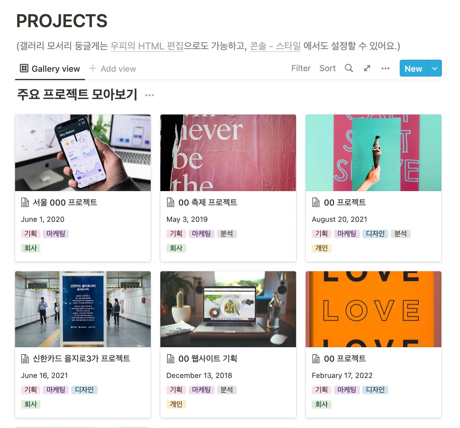 이 기능을 통해 갤러리에 보이는 데이터들을 내가 원하는대로 보여주고 숨길 수 있어요!