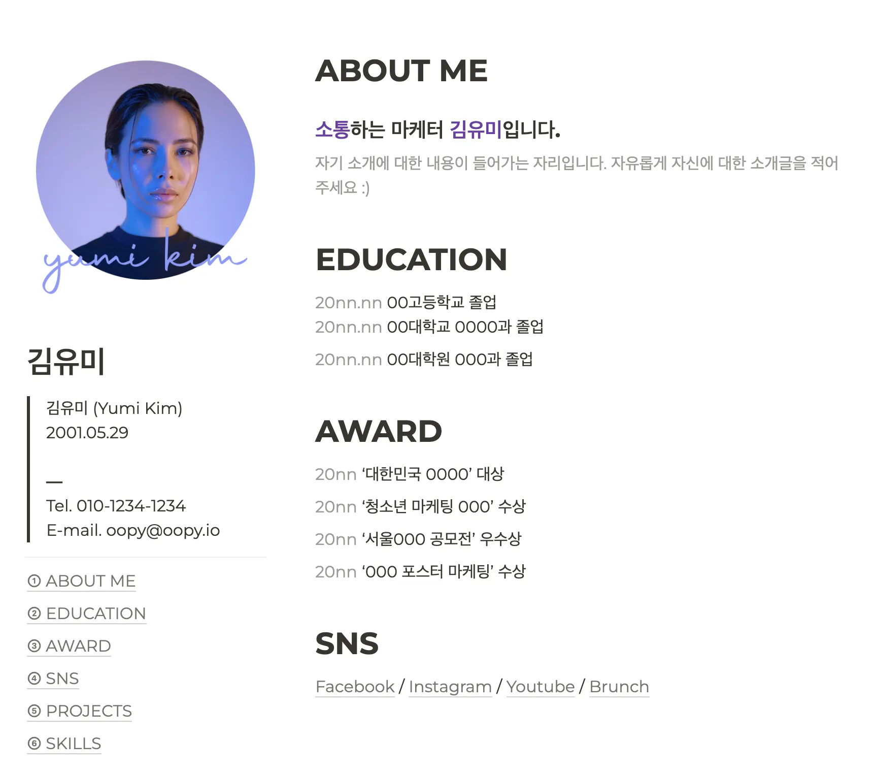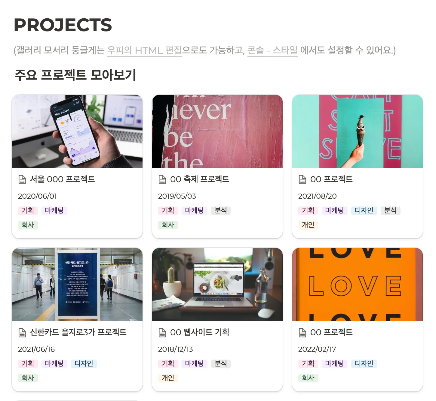 포트폴리오는 우피 사용자 분들이 많이 제작하는 페이지 중 하나인데요,