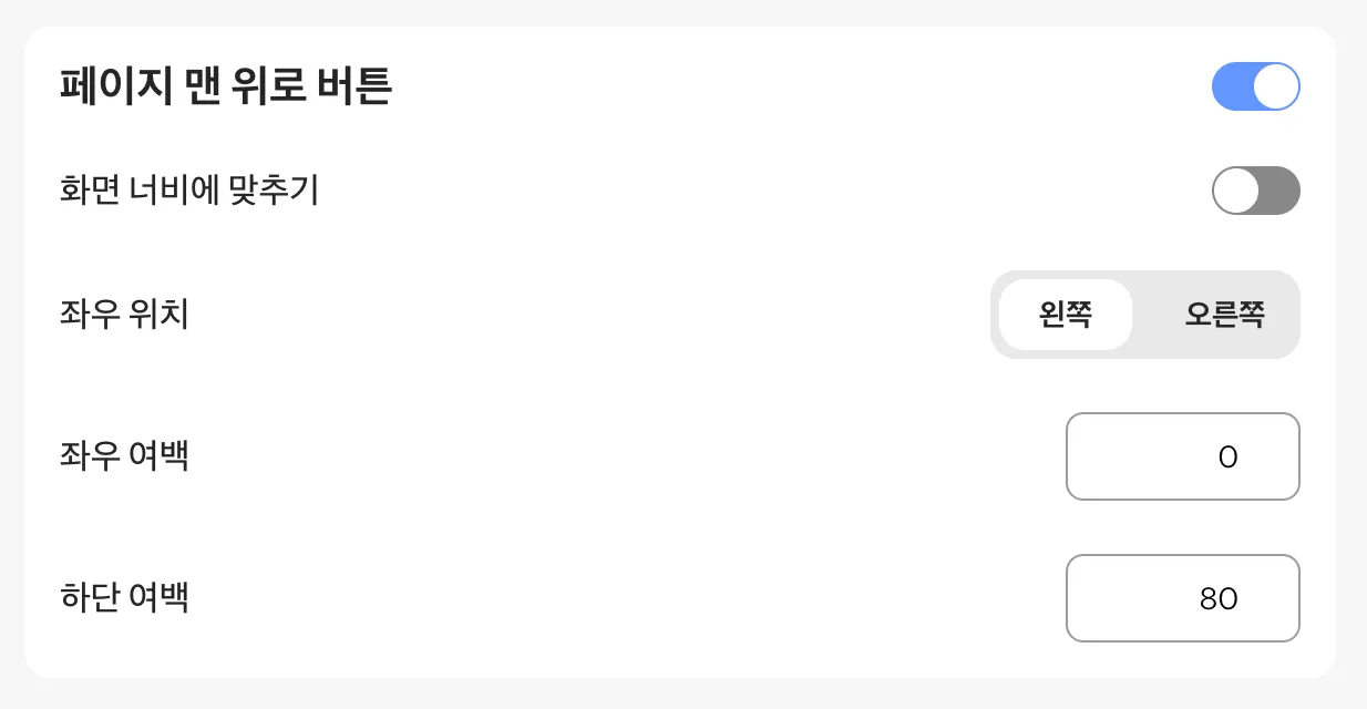 페이지 맨 위로 버튼은 커스텀하게 위치 설정을 할 수 있어요.