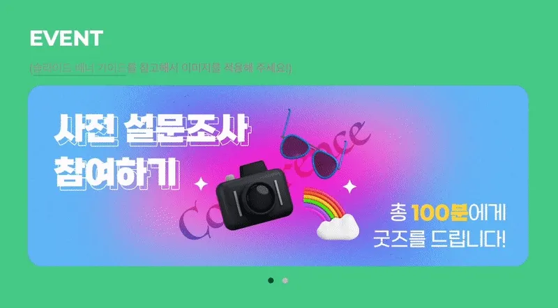 컨퍼런스의 이벤트를 홍보하고 싶을 때 아래처럼 슬라이드 배너를 사용해 보세요!