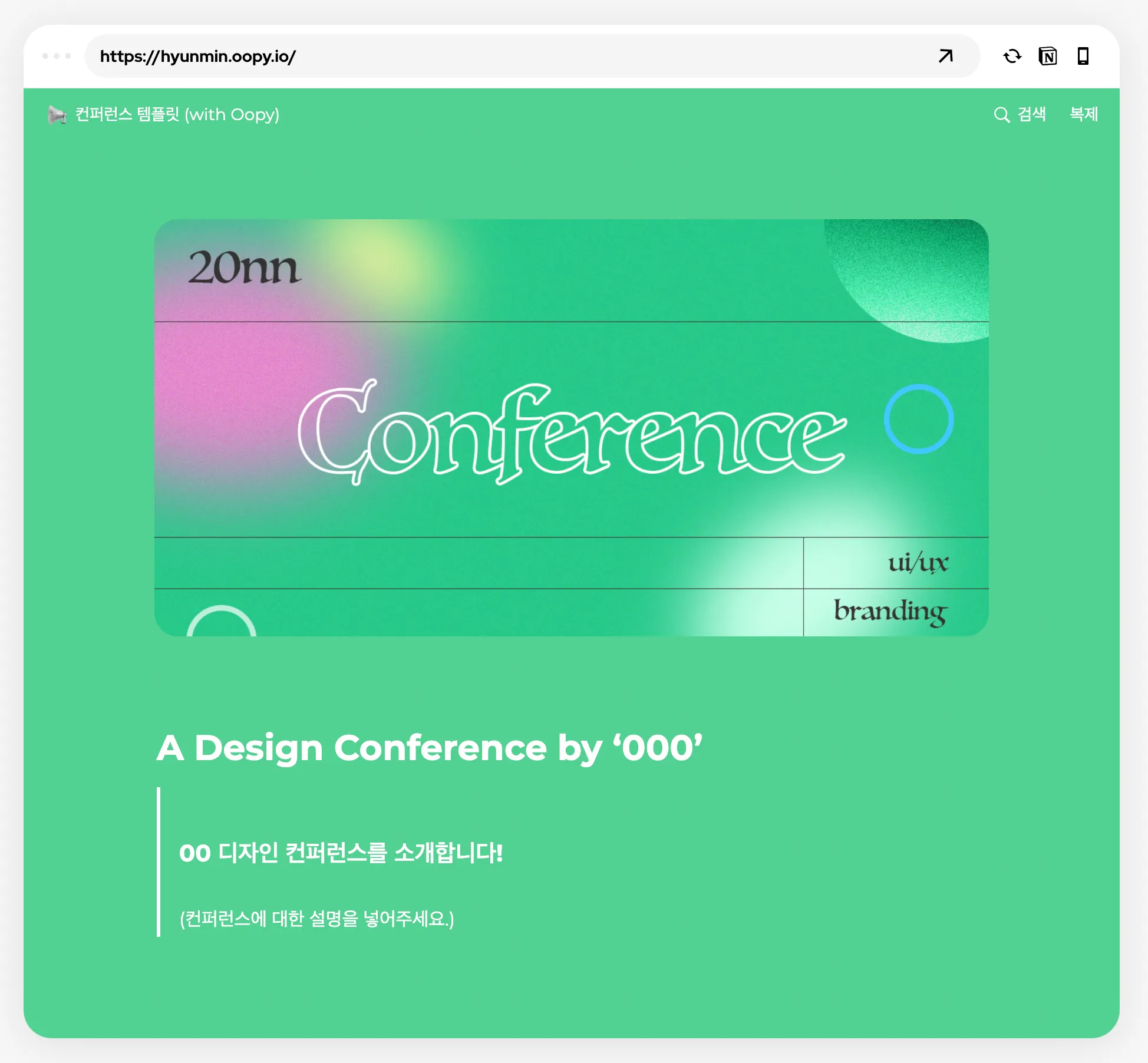 템플릿을 복제해 가져간 후 컨퍼런스의 컨셉에 맞게 바꾸면 끝!