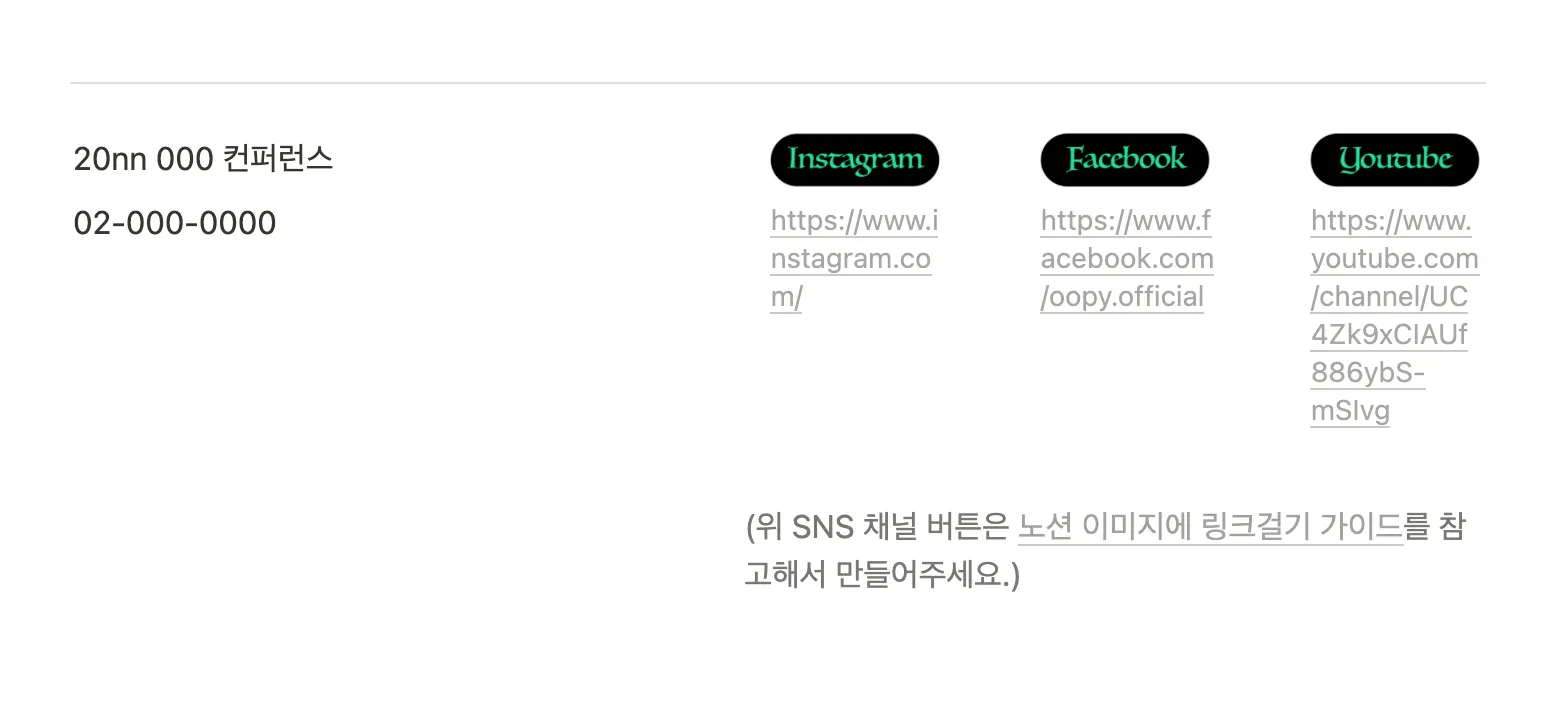 우피는 페이지 하단의 SNS 링크를 이런식으로 적용해봤어요