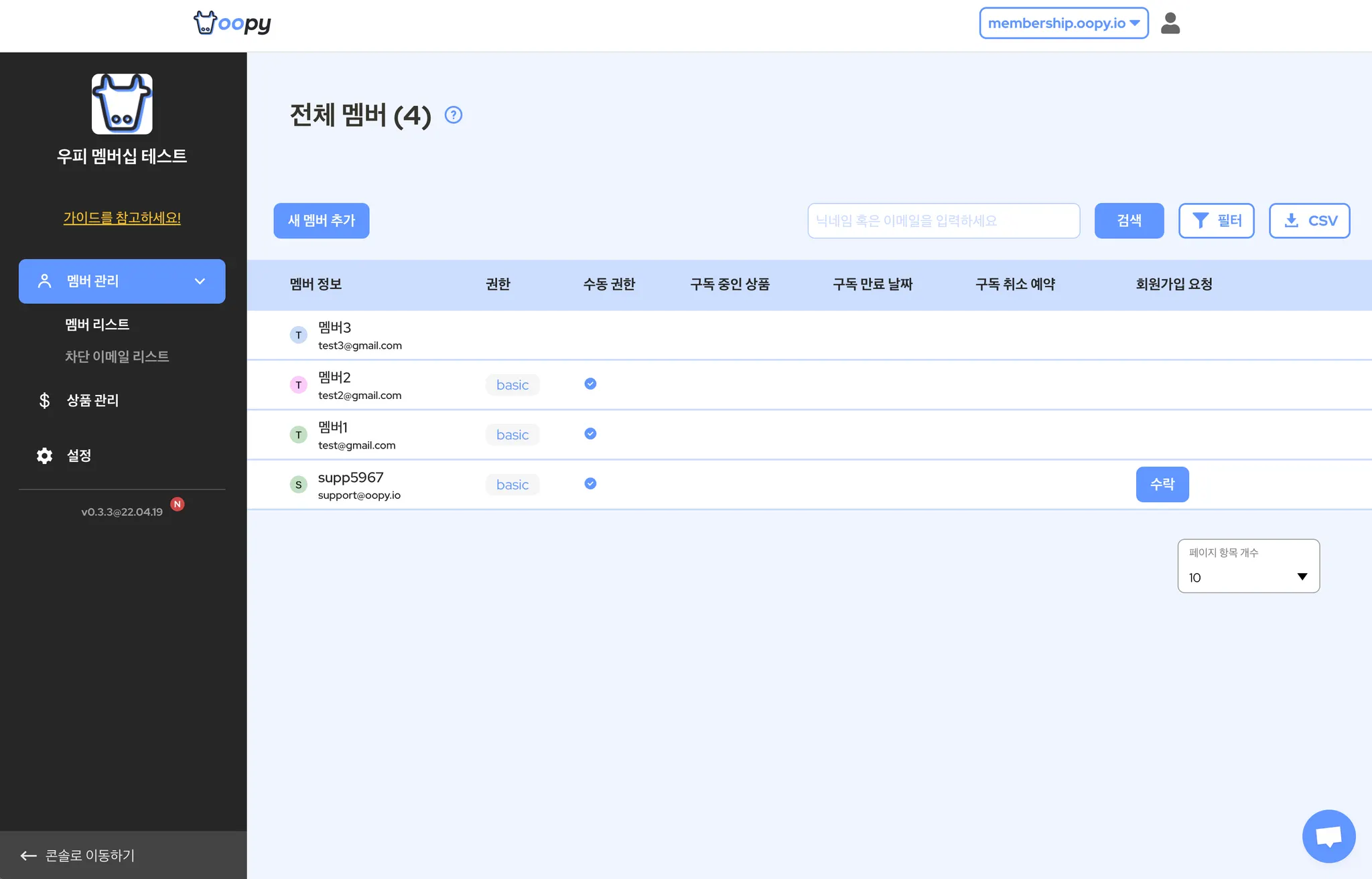 우피 멤버십 콘솔에서 멤버 리스트 및 각 멤버의 상세 정보를 확인하는 방법을 안내해 드릴게요