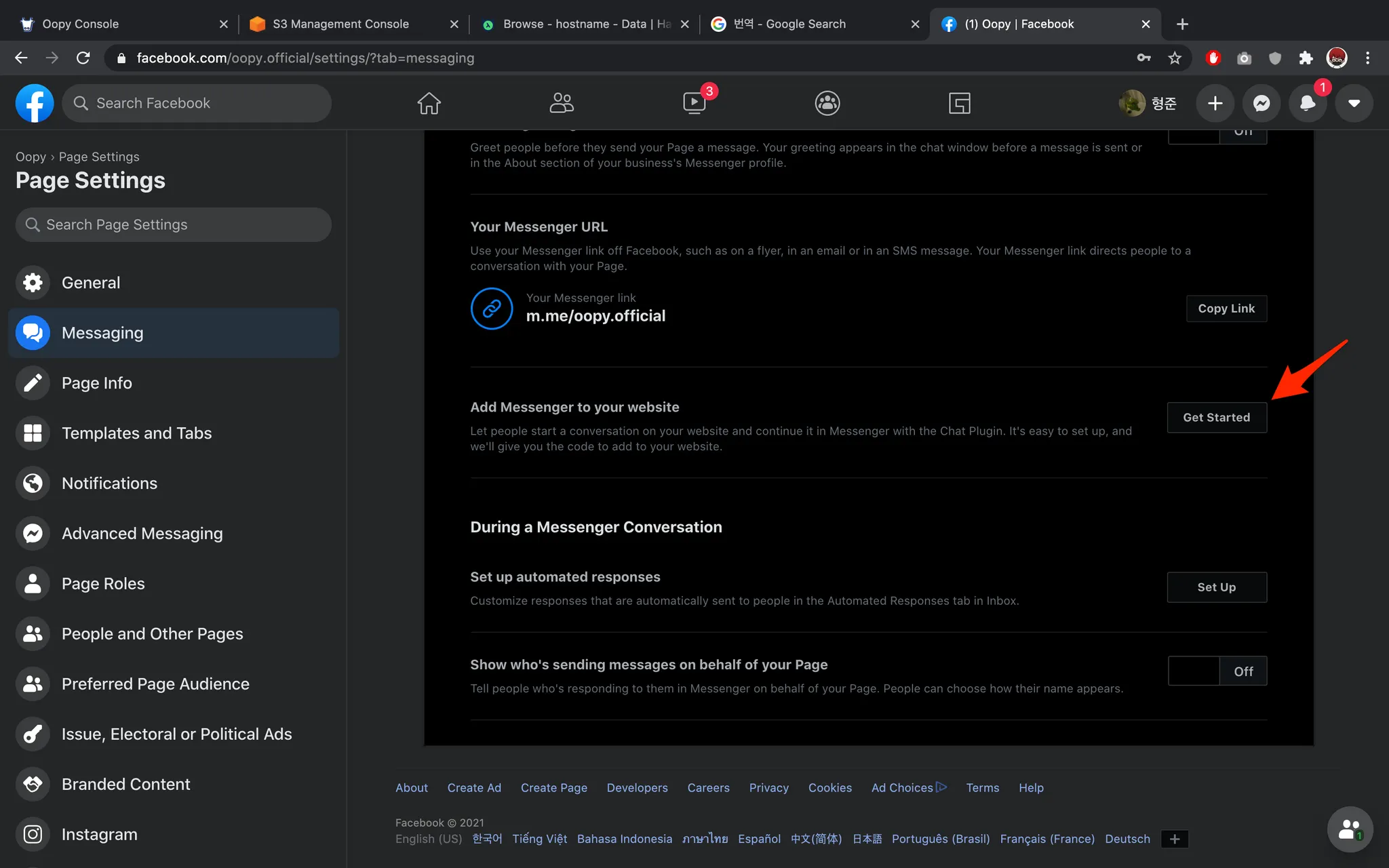 Go to Settings → Messaging → Add Messenger to your website → Get Started