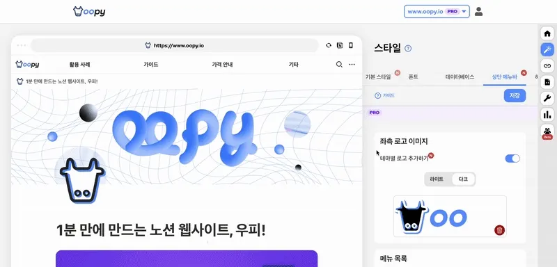 상단 메뉴바 왼쪽에 설정할 수 있던 로고를 각 테마에 맞게 설정할 수 있어요!