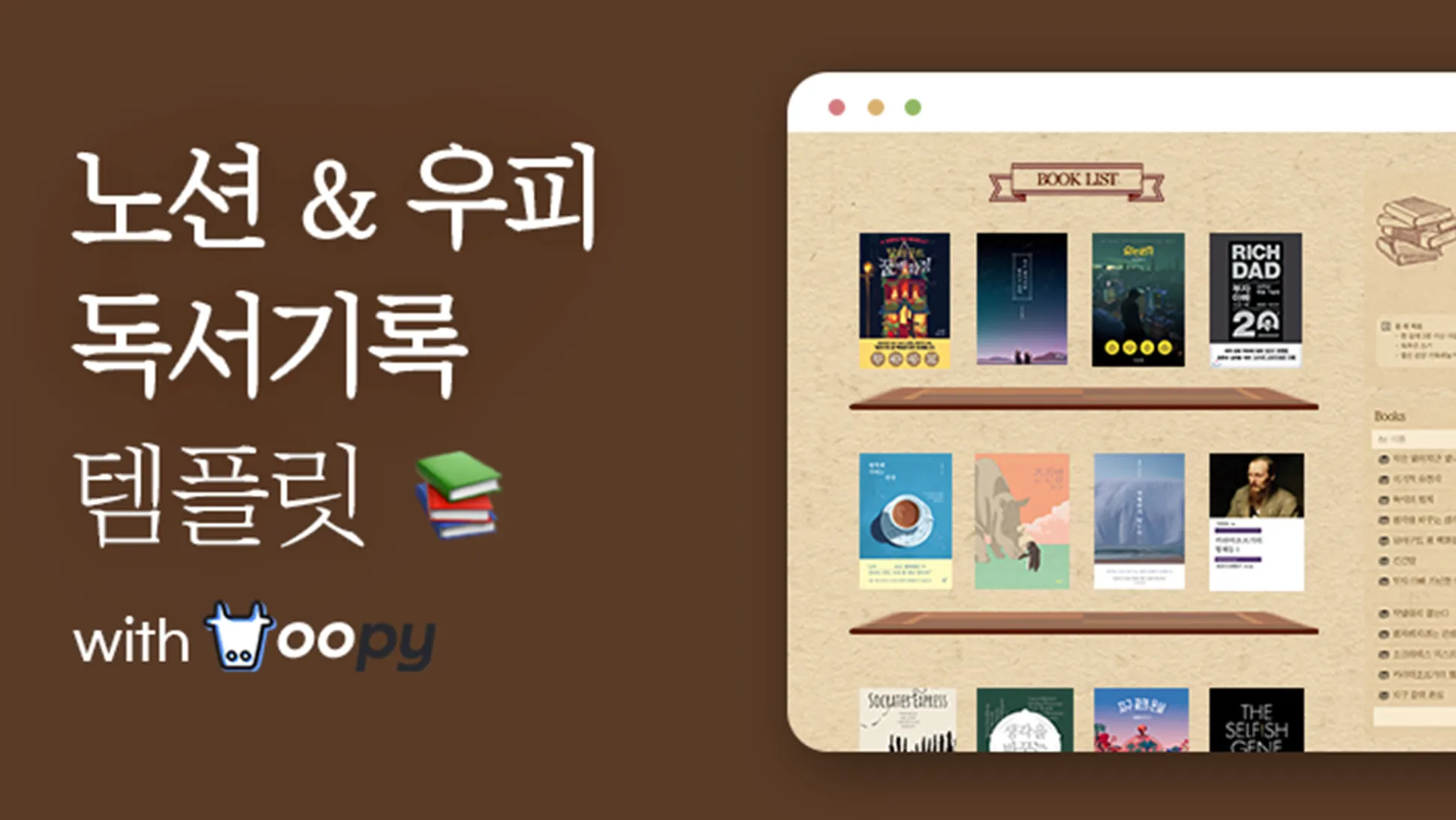내가 읽은 책들을 책장 속에 담은 것 처럼 기록할 수 있는 템플릿입니다.