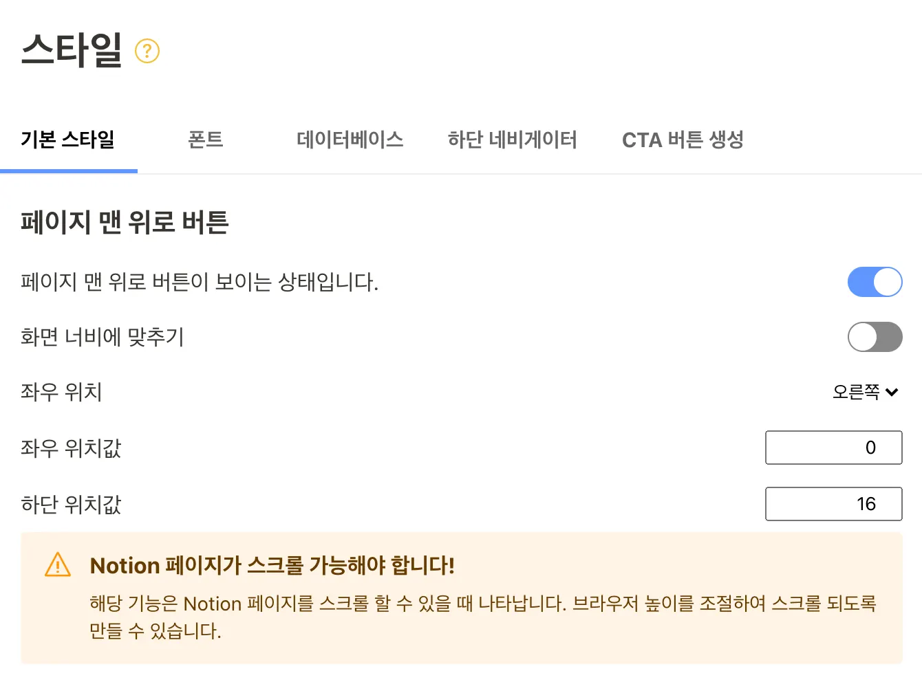 이 버튼을 넣으면 불편함 없이 클릭 한 번에 상단으로 바로 이동할 수 있어요