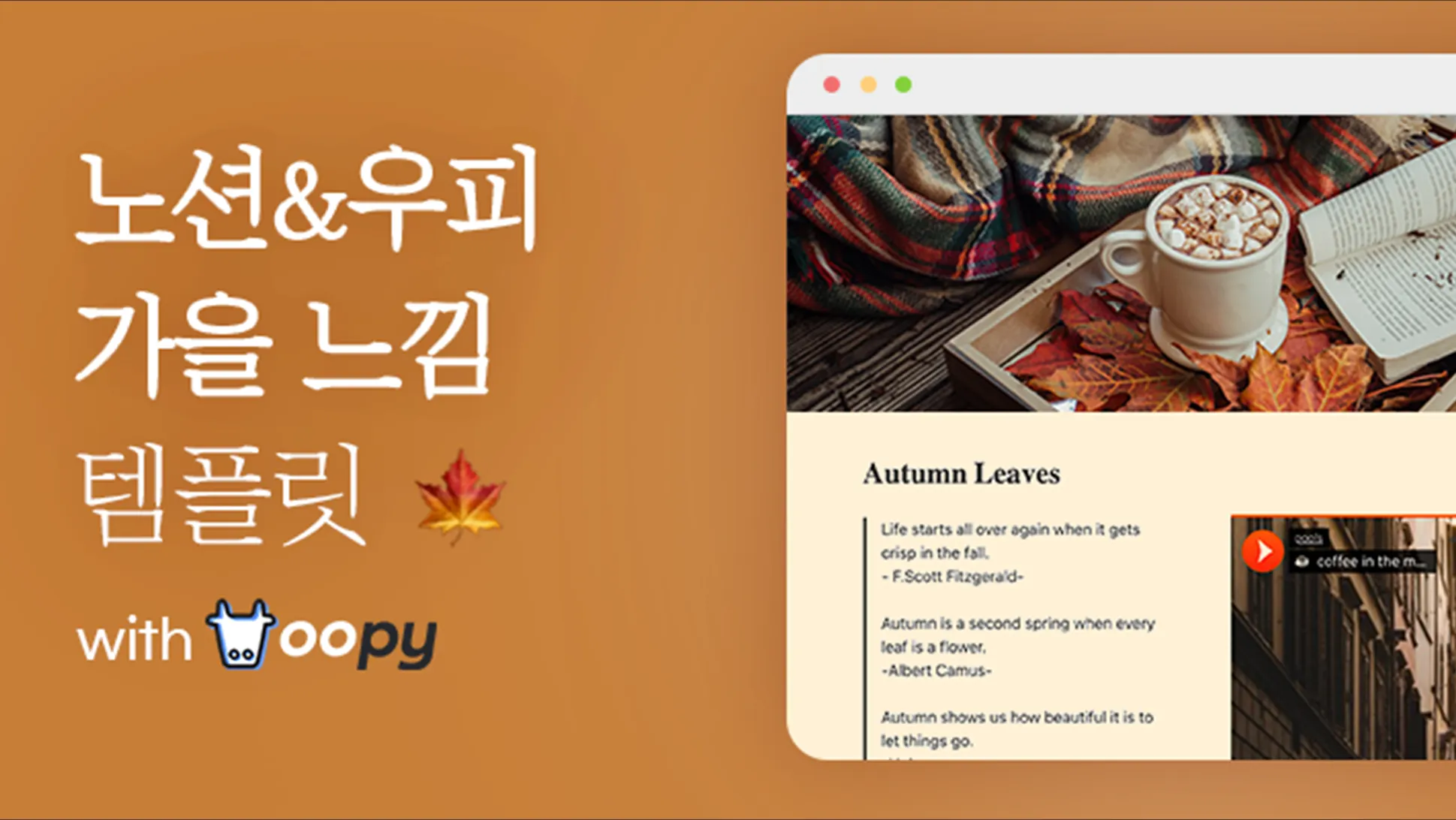 * 현재 페이지에서 보이는 우피의 기능은 모두 HTML 코드로 적용이 되어 있습니다. 이 기능들은 우피 콘솔에서도 동일하게 적용할 수 있는데요. 페이지에 있는 HTML 코드와 콘솔의 기능이 중복으로 겹치면 원하는대로 구현이 되지 않을 수 있으니 주의해 주세요! * 템플릿과 관련된 자세한 기능 소개를 원하시면 아래 링크를 통해서 확인해 보세요.